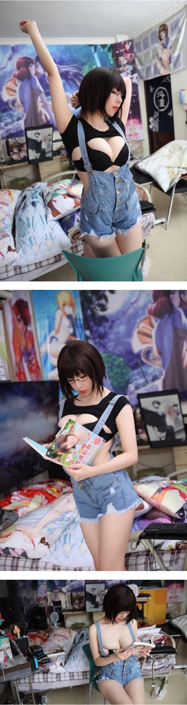 섹시한 홀터넥 민소매 가슴골 안경 미모