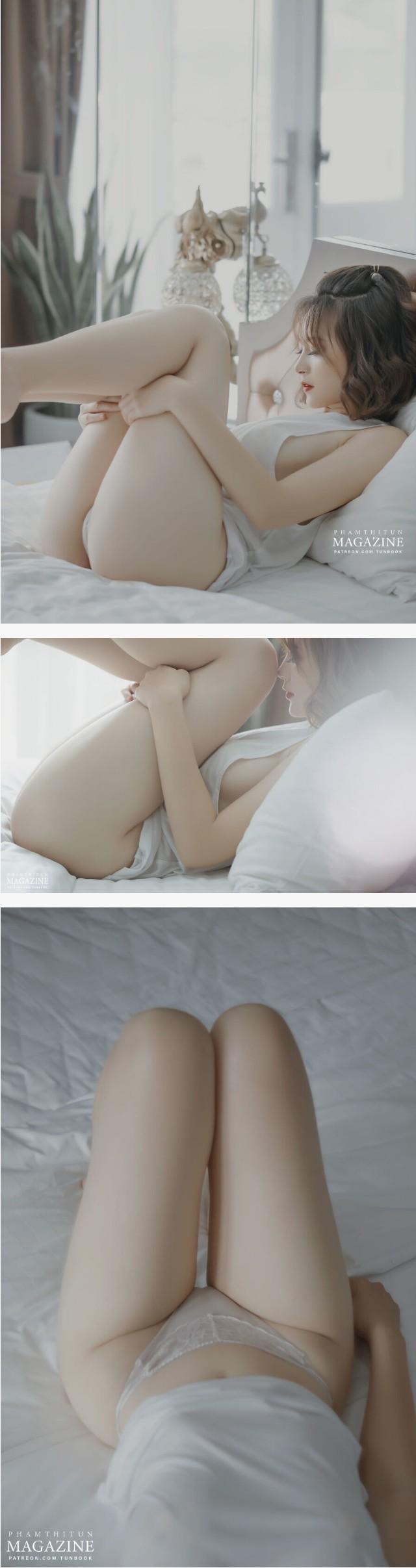 [안구정화] 동그란 가슴 아래를 받쳐주는 와이어브라 흰 비키니
