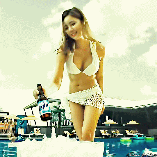 [안구정화] 동그란 가슴 아래를 받쳐주는 와이어브라 흰 비키니