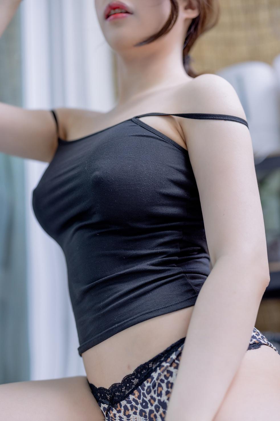[안구정화] 섹시한 홀터넥 민소매 가슴골 안경 미모