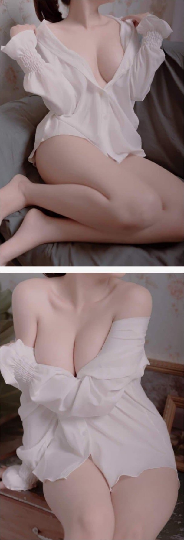 달랑 셔츠 하나만 걸치고 있는 여자