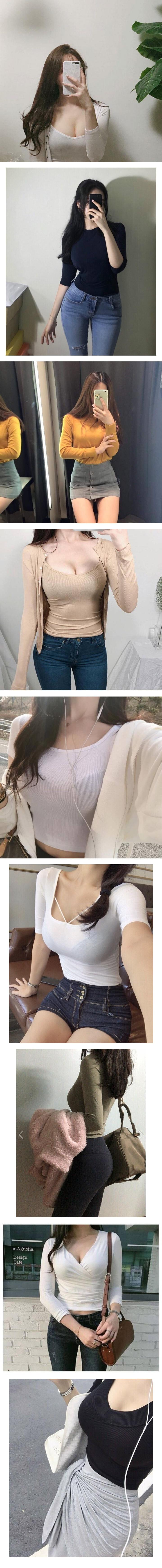 섹시한 홀터넥 민소매 가슴골 안경 미모