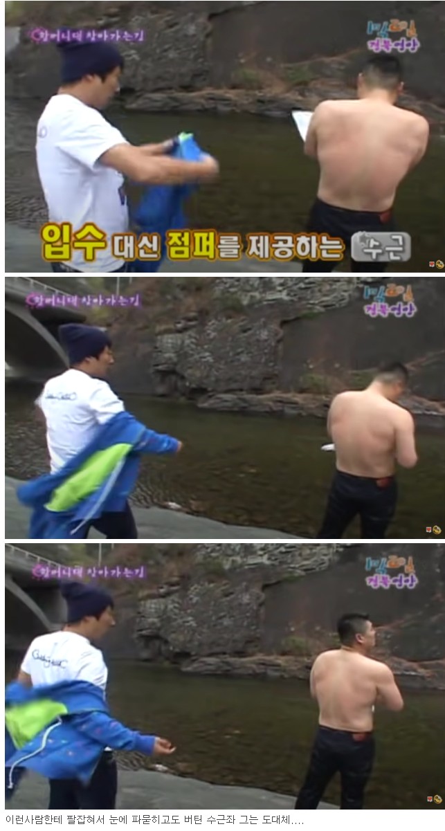 강호동 2009년 1박 2일 당시 등근육 수준