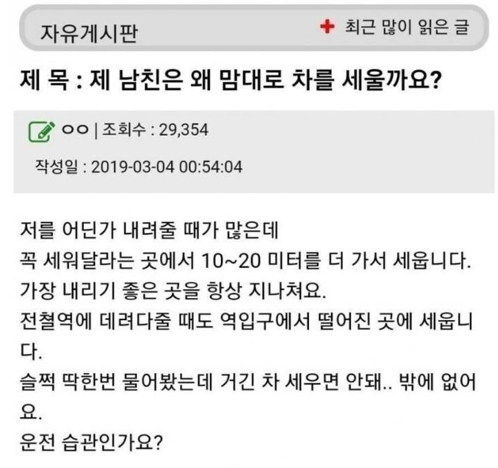 제 남친은 왜 마음대로 차를 세울까요?