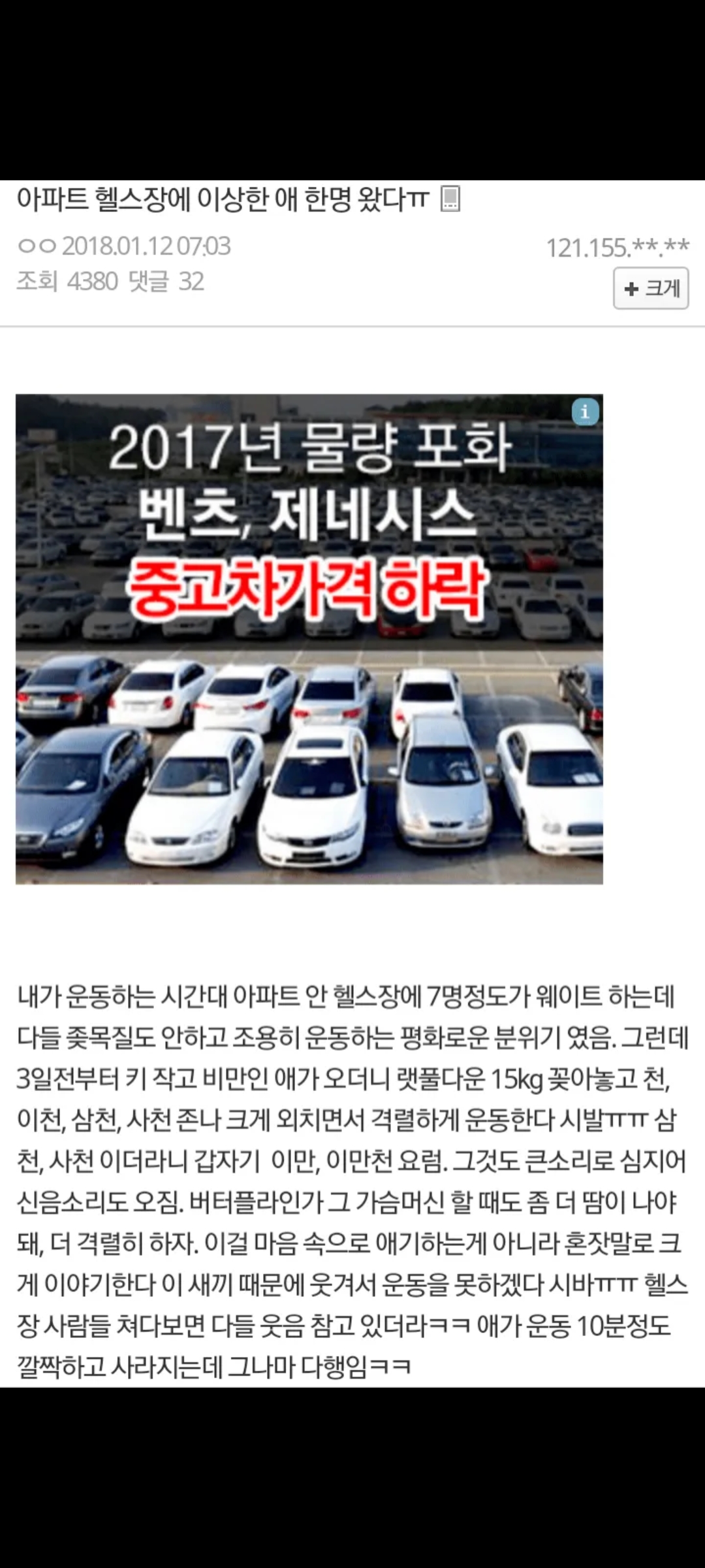 아파트 헬스장에 이상한애 왔다 ㅠ