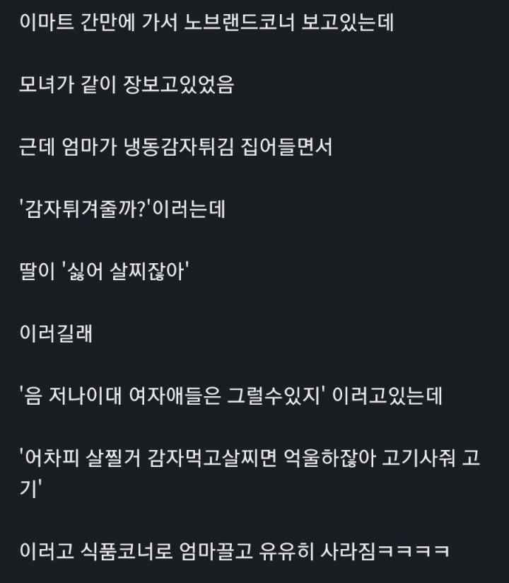 감자튀김 튀겨줄까? 싫어 살찌잖아