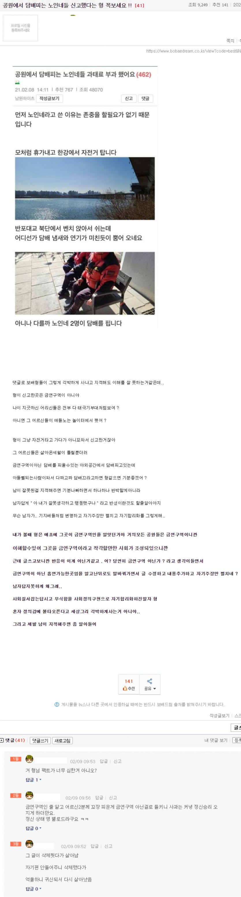 공원에서 담배 피는 노인 시비털은 보배인 참교육