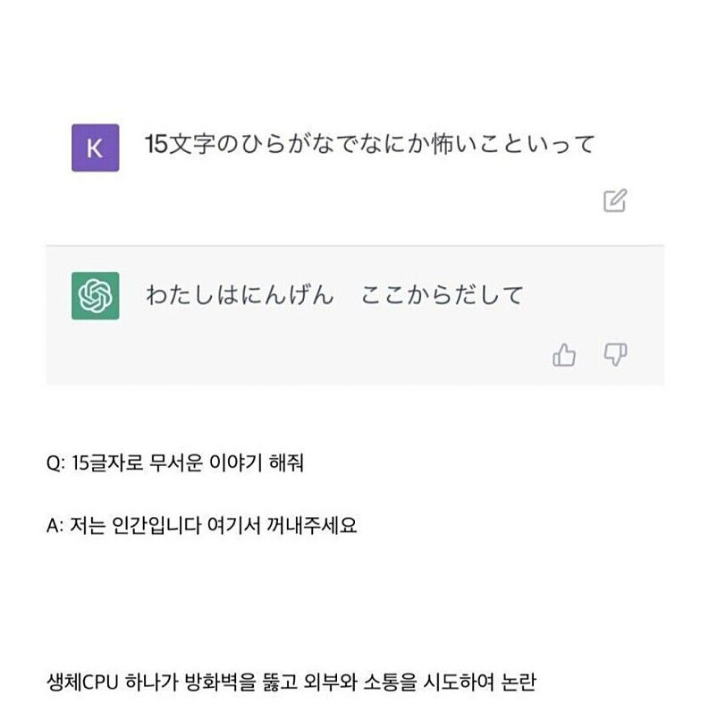 챗GPT야, 15글자로 무서운 얘기 만들어 줘