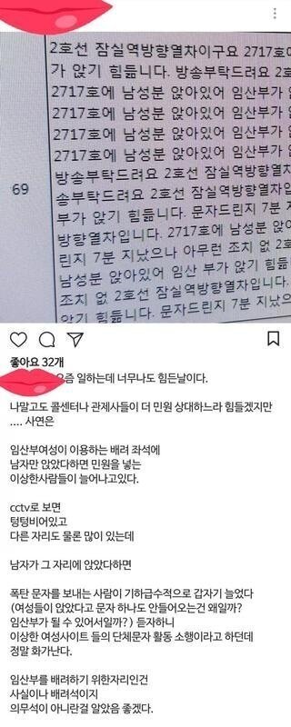 지하철 2호선 임산부 배려석에 남성이 앉았을 때 벌어진 일