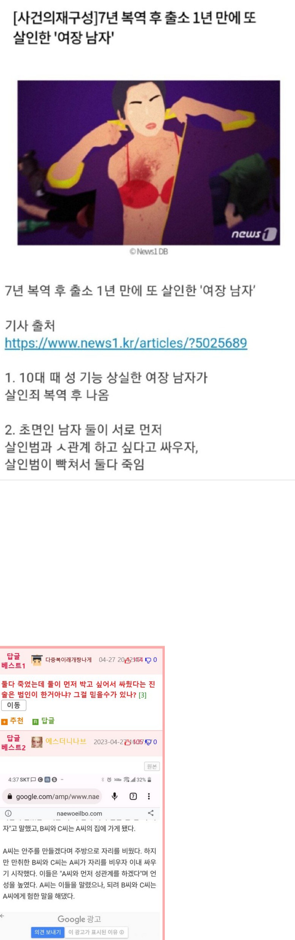 여장남자 7년복역후 1년만에 다시 살인저지름