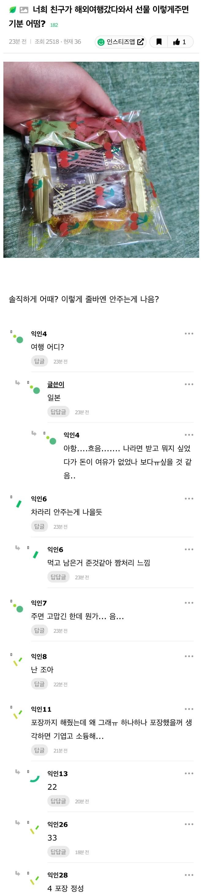 해외여행 다녀온 친구가 선물 이렇게 주면 기분 어떰?