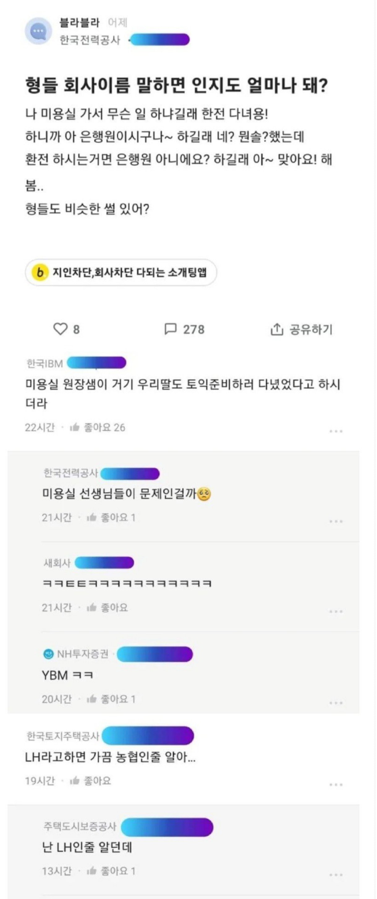 블라인드 회사인지도