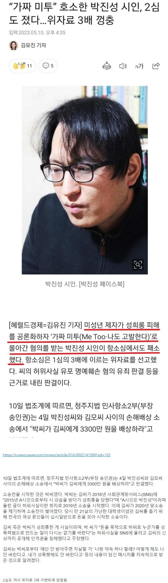 '가짜 미투' 호소한 박진성 시인 근황