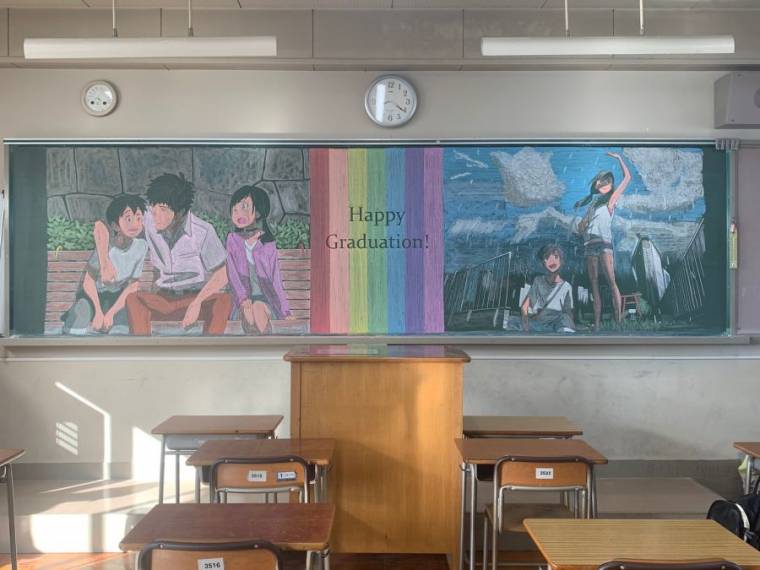 학교 담임선생님이 학생들 졸업을 축하하기 위해서 10일 동안 칠판에 그림을 그려줌