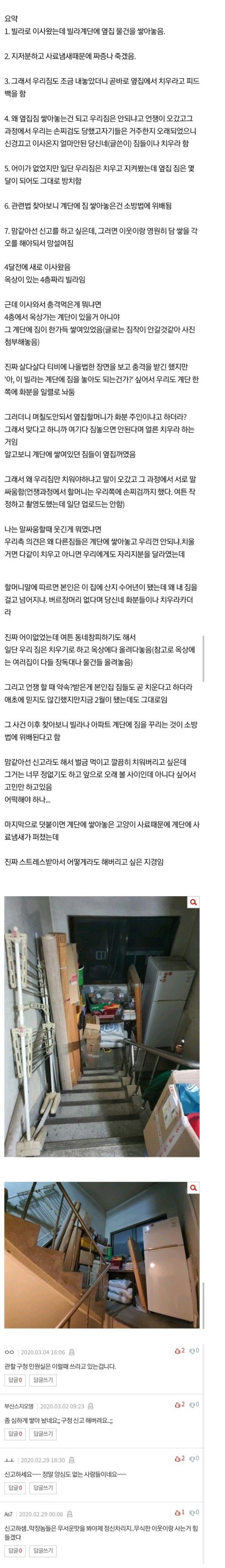 이사왔더니 계단에 짐을 잔뜩 쌓아놓은 이웃 때문에 개빡침