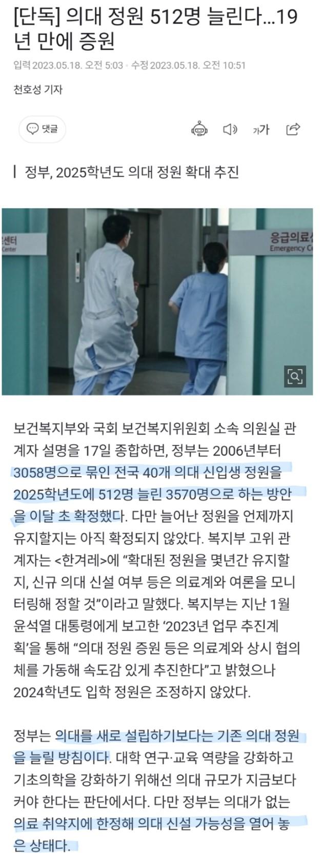 '19년 만에 증원' 의대 정원 512명 늘린다
