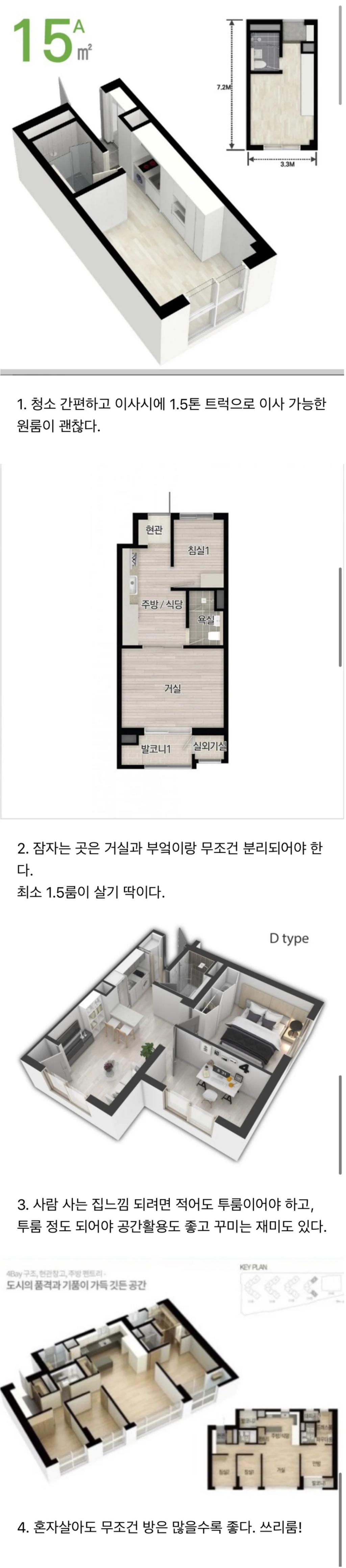 혼자 산다면 원룸 vs 1.5룸 vs 투룸 vs 쓰리룸