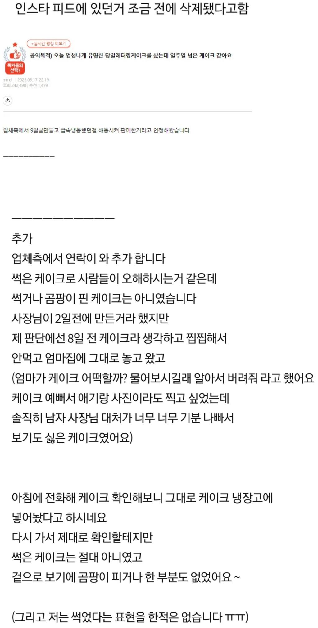 케이크를 샀는데 오래된거 같아요 그리고 후기