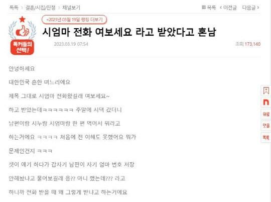 시어머니 전화 여보세요 라고 받았다가 혼남