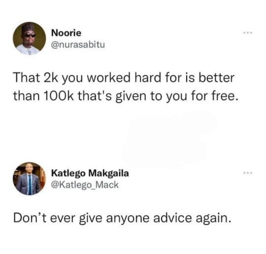 "두 번 다시 누구한테 조언하지 마라."