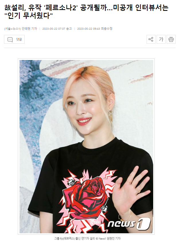 최근 온라인 커뮤니티에서는 한 해외 팬의 사회관계망서비스(SNS) 계정에 올라온 글을 토대로 설리의 유작인 '페르소나: 설리'가 6월16일 넷플릭스를 통해 공개된다는 소식이 퍼져나갔다.