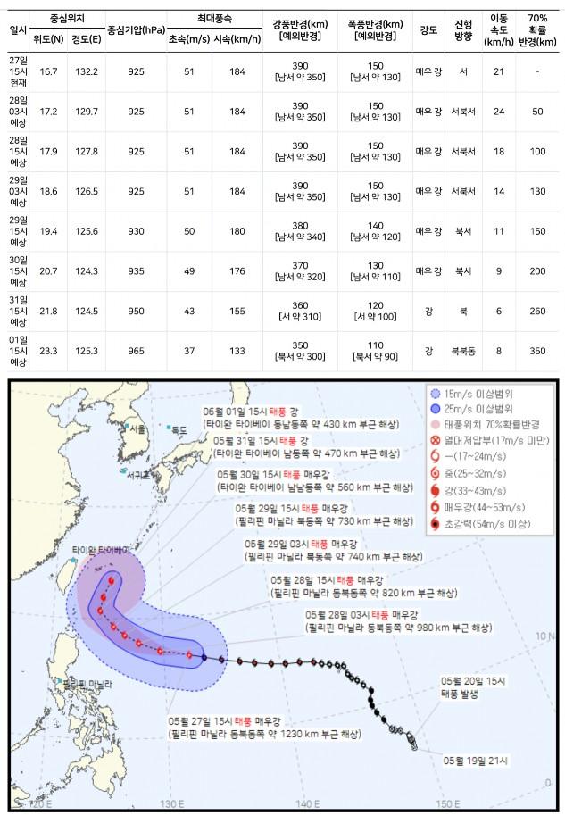 제2호 태풍 마와르 기상청 예상 이동경로