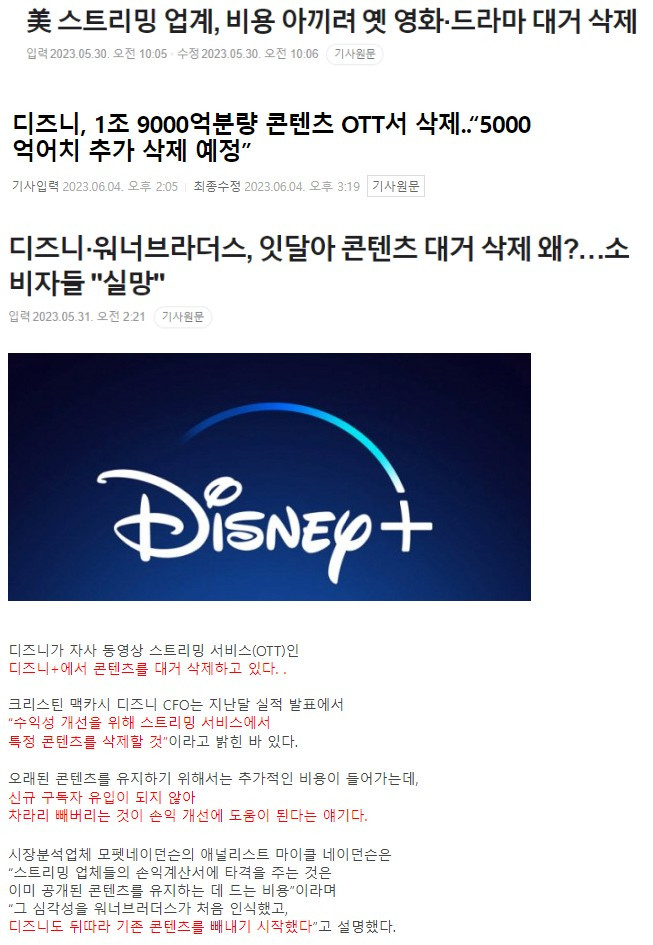콘텐츠 대규모 삭제 중인 디즈니 플러스