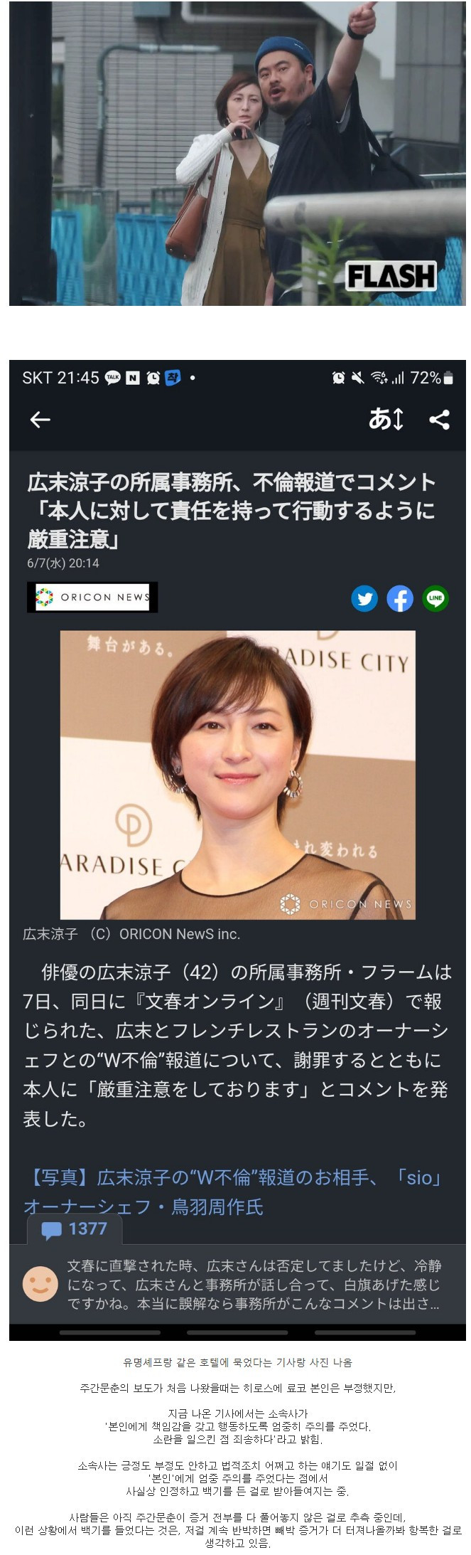 히로스에 료코는 부인했으나 사진이 터져나오니까
