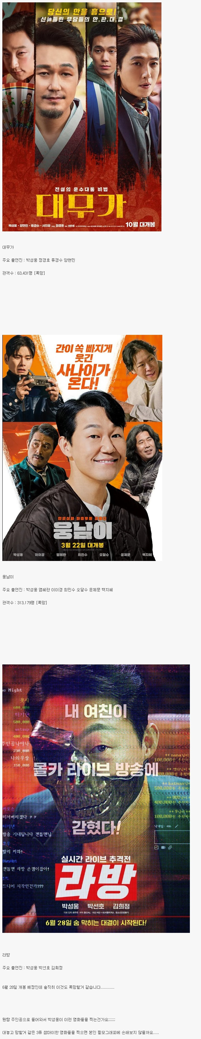 요즘 쌈마이한 3류 영화들만 찍어서 안타까운 배우 박성웅
