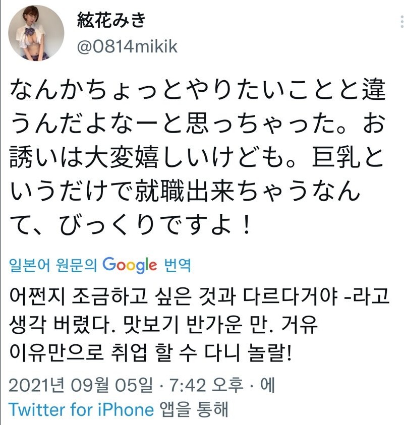가슴이 큰 덕분에 취직했다는 여자