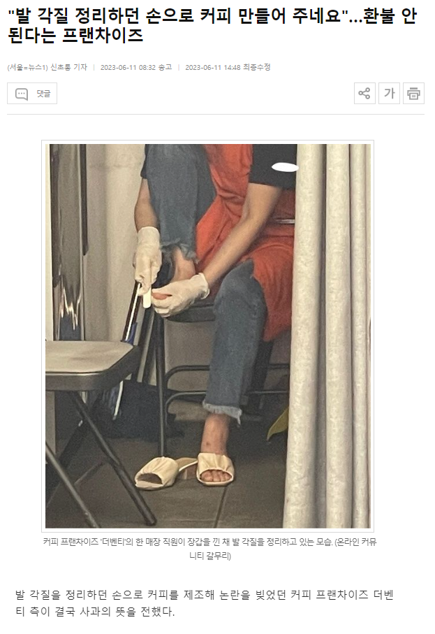 발 각질 커피 만들어준 카페, 환불 불가라더니 결국 사과 ㄷㄷ