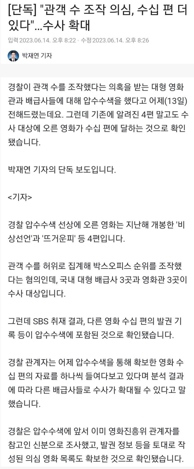 영화 관객수 조작 의심 '수십편' 더 있다고