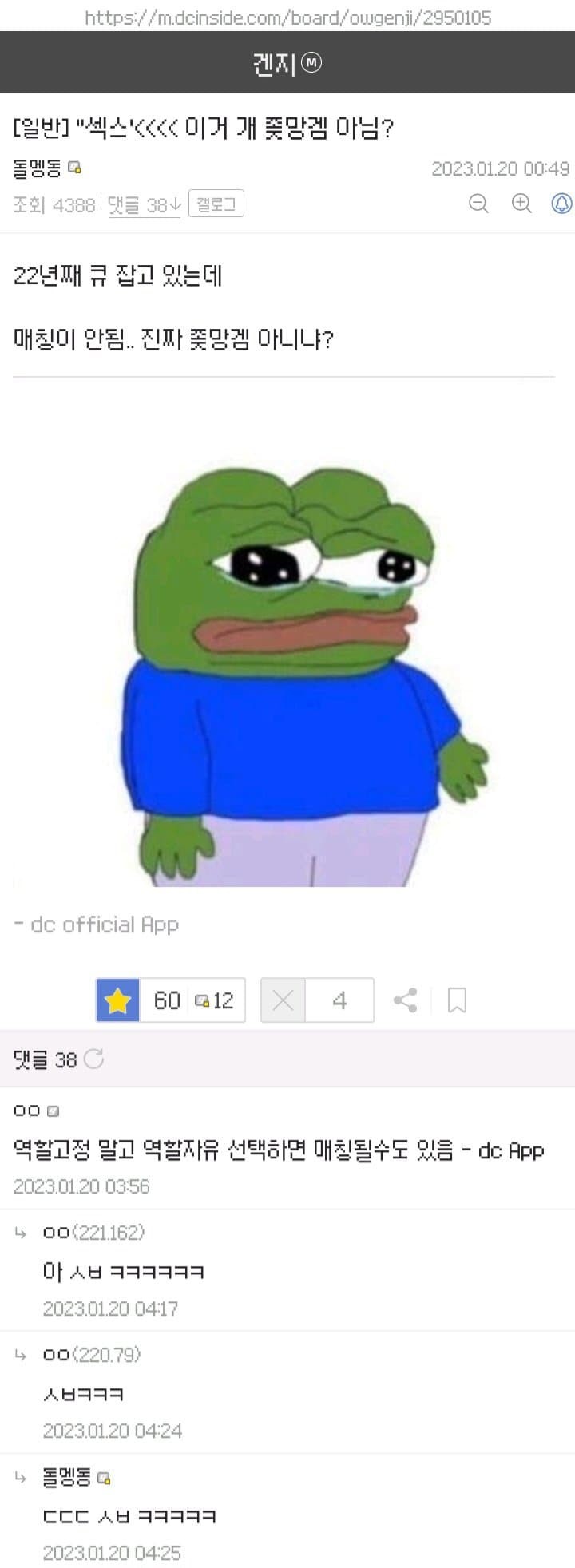 매칭 ㅈㄴ안잡히는 ㅈ망겜