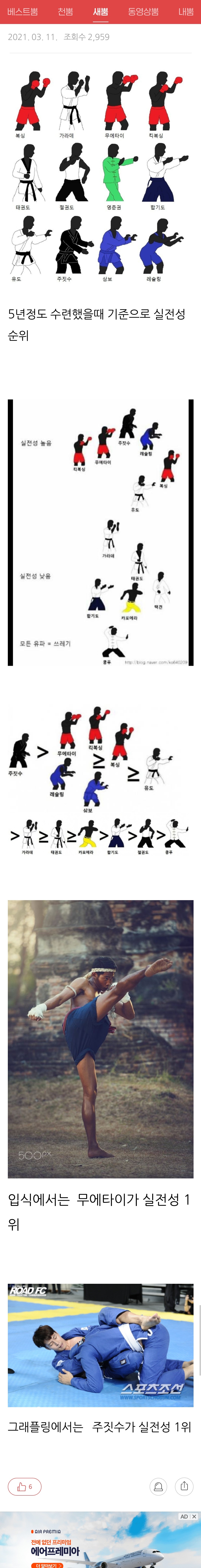 격투기 동호회에서 뽑은 무술 실전성 순위