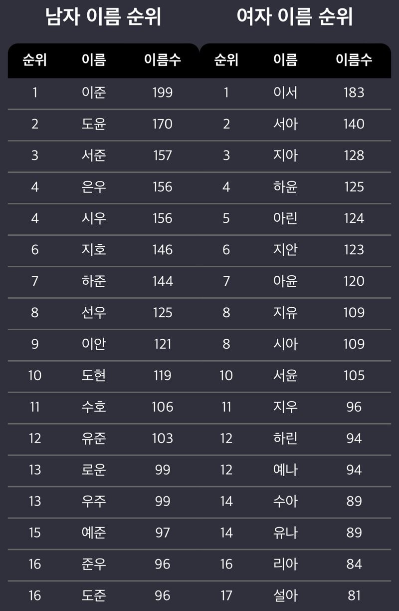 2023 아기 이름 순위