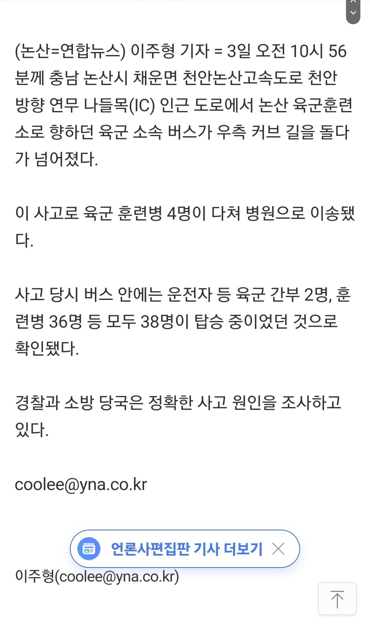 38명 탑승 육군 버스 전도…훈련병 4명 부상
