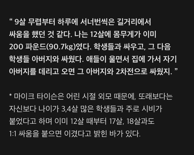 마이크 타이슨 12살에 학부모랑 맞짱 뜬 썰