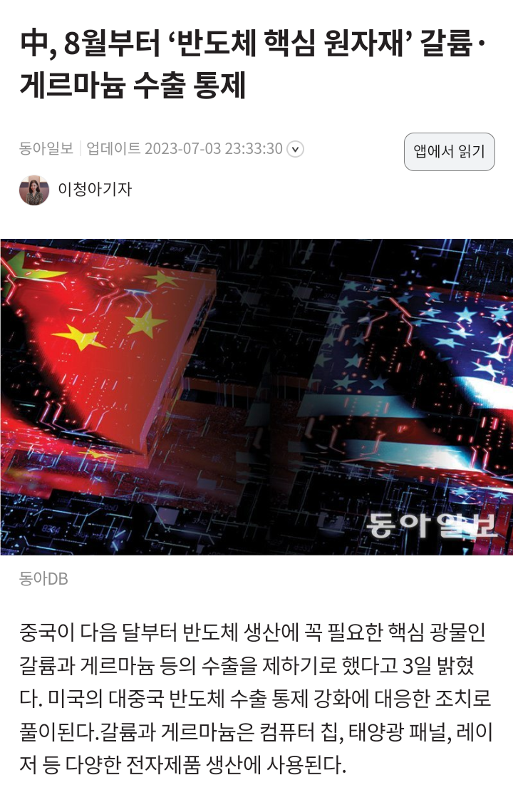 中, 8월부터 ‘반도체 핵심 원자재’ 갈륨·게르마늄 수출 통제