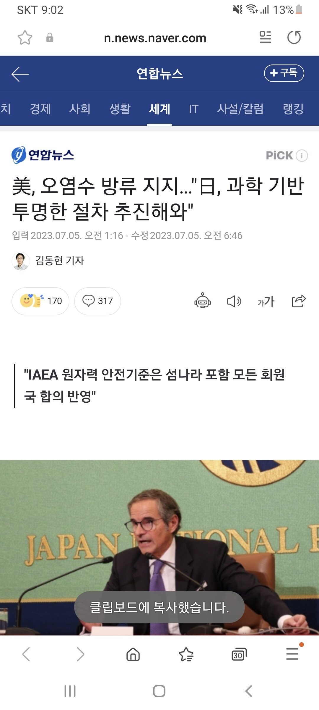 美, 오염수 방류 지지…"日, 과학 기반 투명한 절차 추진해와"