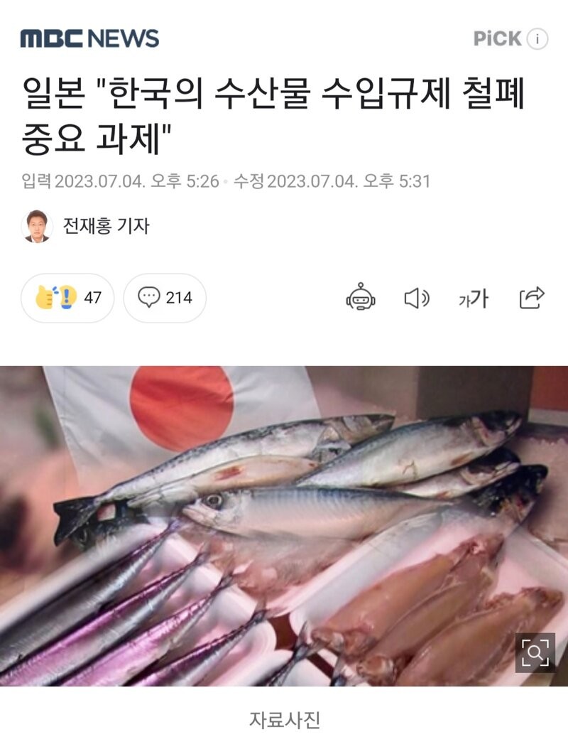 일본 "한국의 수산물 수입규제 철폐 중요 과제