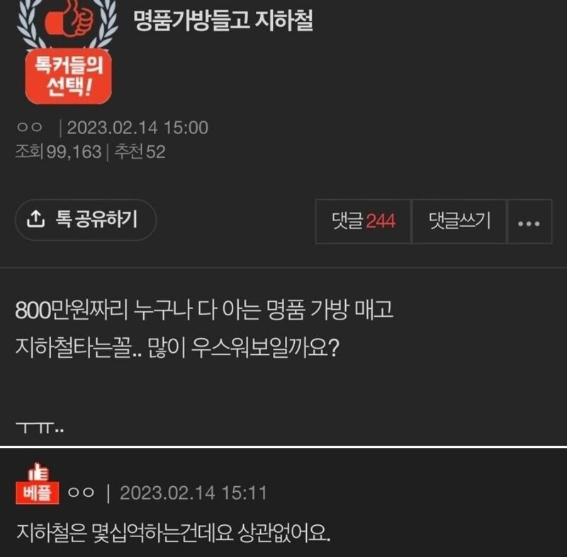 800만원짜리 명품 가방 들고 지하철타는꼴...많이 우스워보일까요?