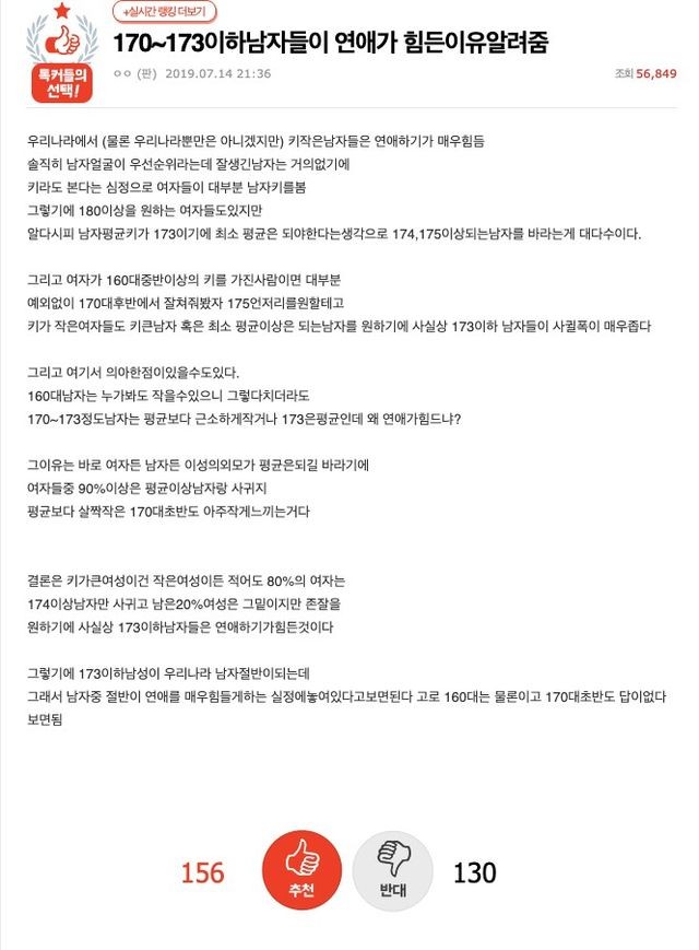 170~173이하남자들이 연애가 힘든이유알려줌