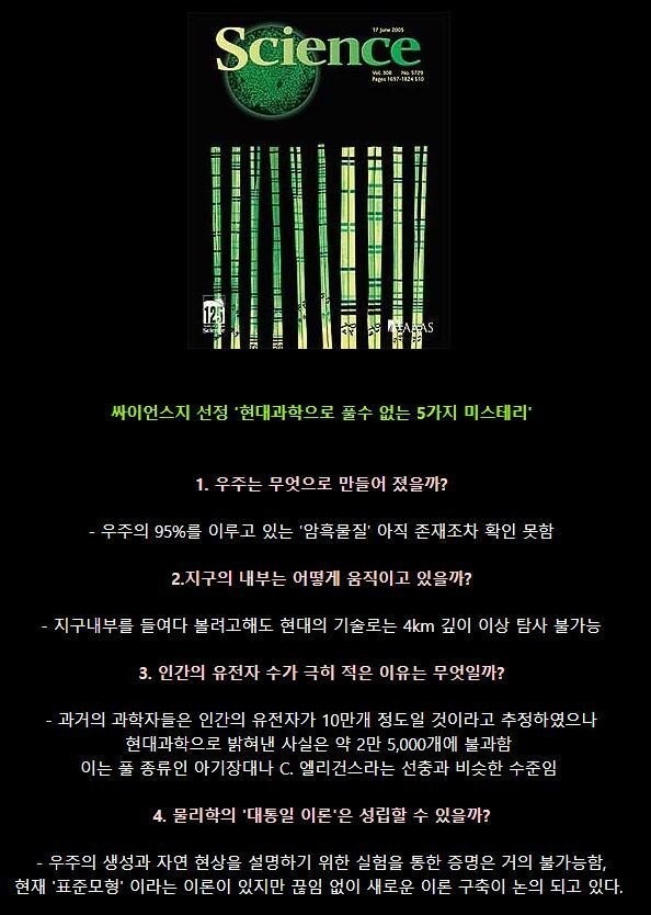 싸이언스지 선정 "현대과학으로 풀수 없는 5가지 미스테리"