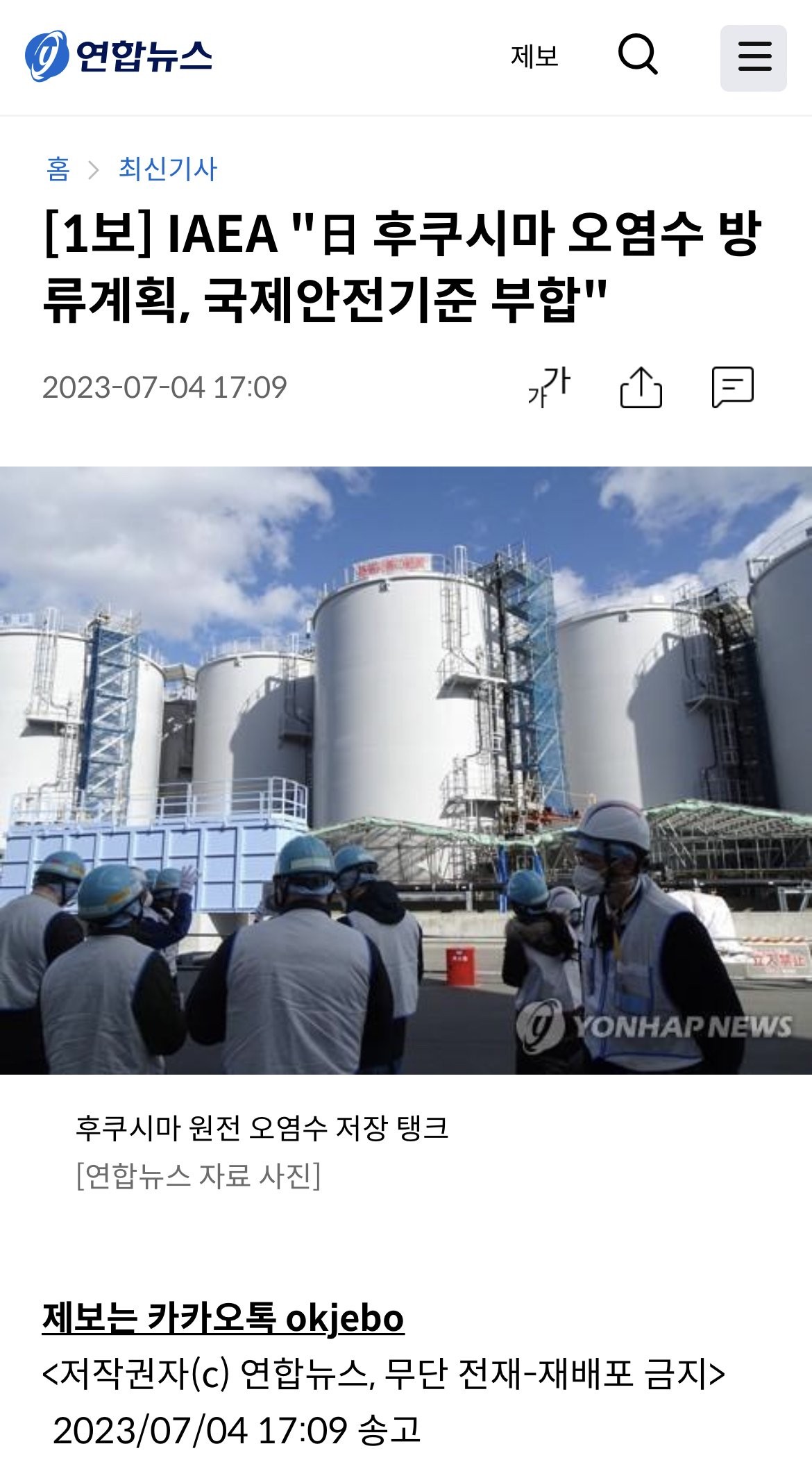 IAEA "日 후쿠시마 오염수 방류계획, 국제안전기준 부합"