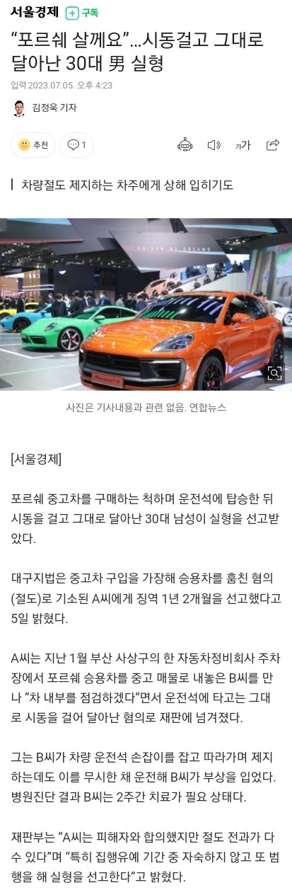 중고포르쉐 시승하는척 도주 ㅋㅋ