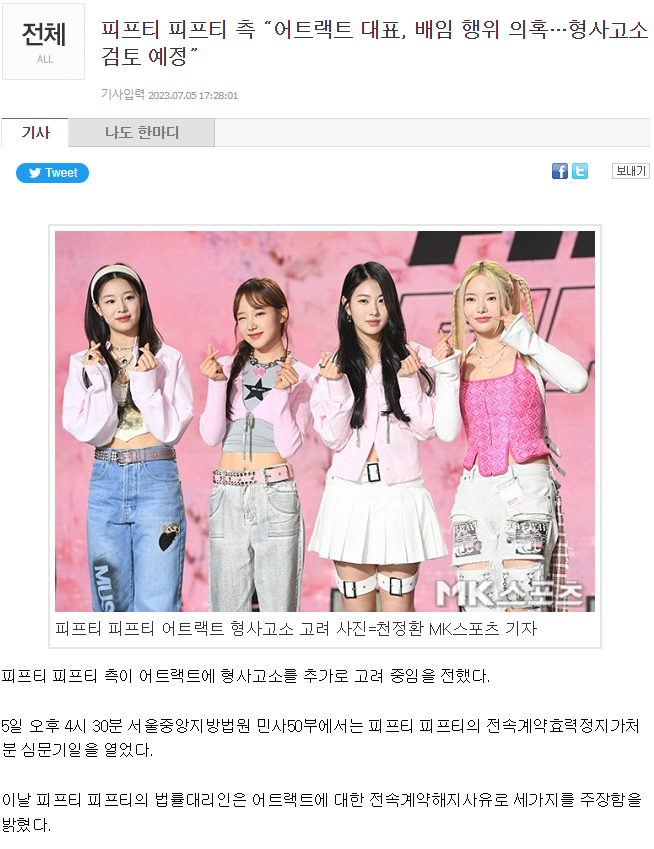 피프티 피프티 측 “어트랙트 대표, 배임 행위 의혹에 형사고소 검토 예정”