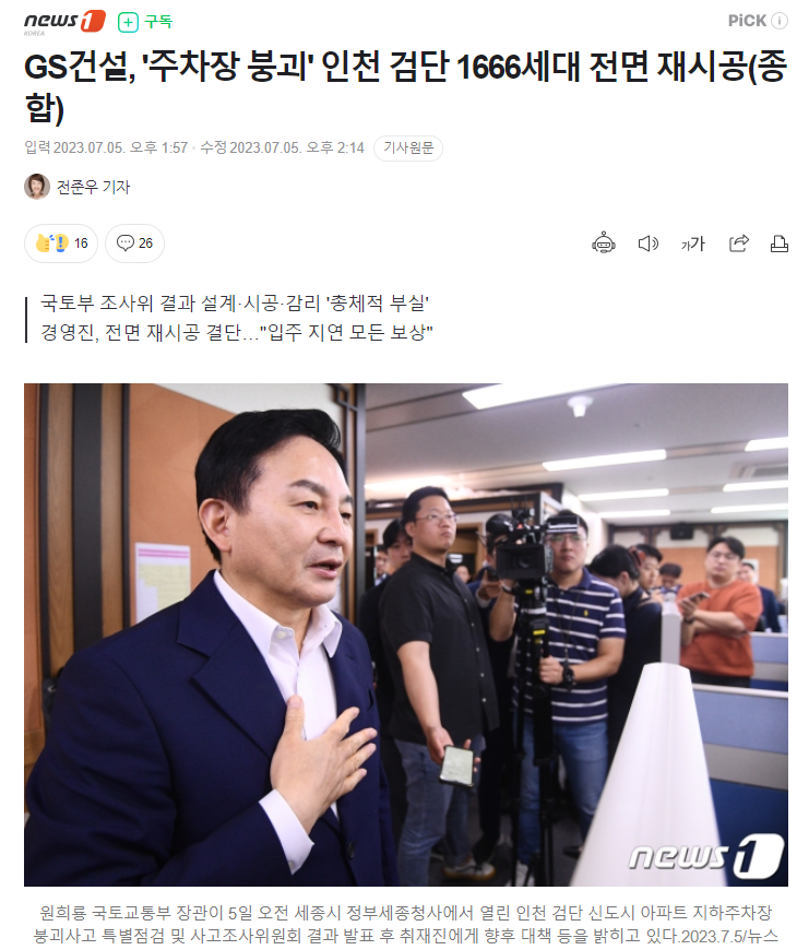 GS건설, '주차장 붕괴' 인천 검단 1666세대 전면 재시공(종합)