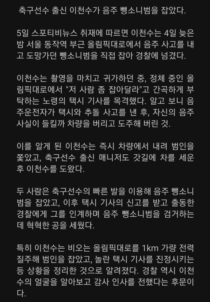 이천수, 음주 뺑소니범 잡았다 '올림픽대로 빗속 질주'