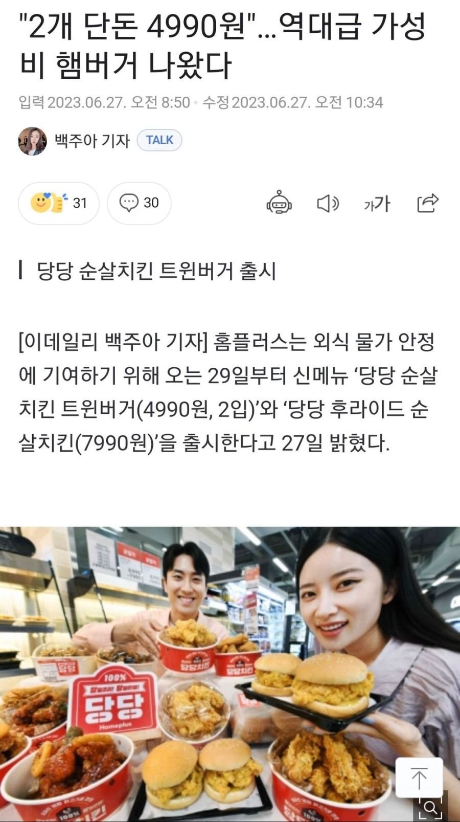 홈플러스, 당당버거 (1개당 2490원) 출시