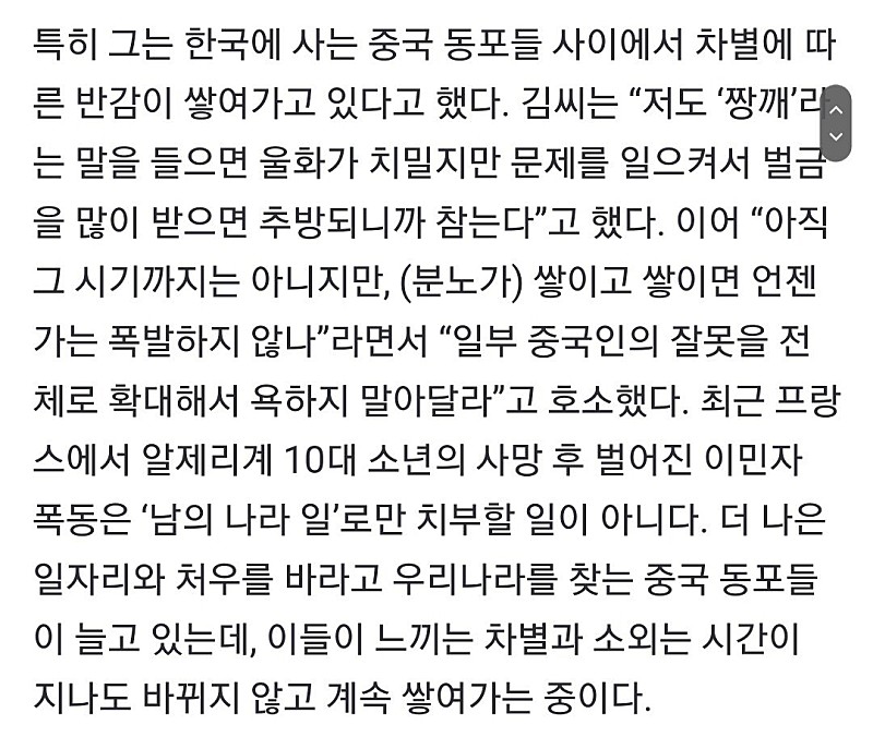 프랑스폭동, 남일 아니다…‘짱깨’라며 차별, 20년 전과 똑같아” 본문 기타 기능